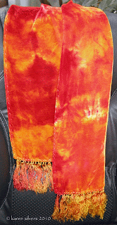 I also bought some scarf blanks in various silks and silk/rayon blend to test. This is a silk/rayon blend velvet.