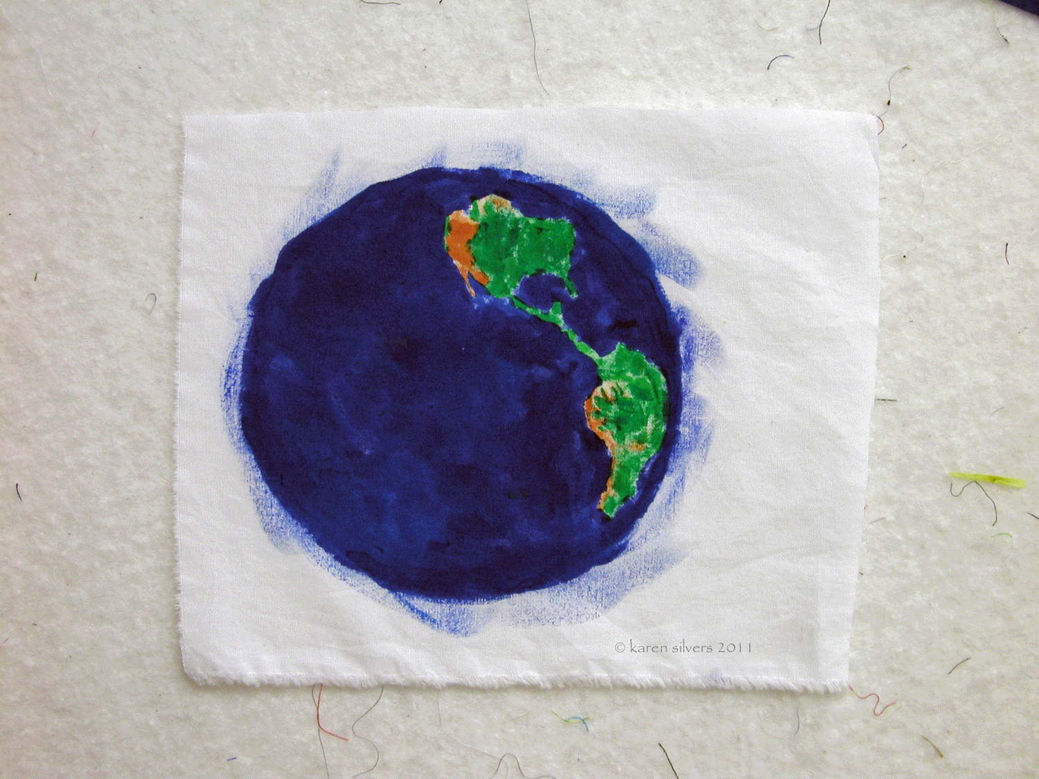 This bottom photo is the back of the fabric after I spread the dye over the potato starch.
