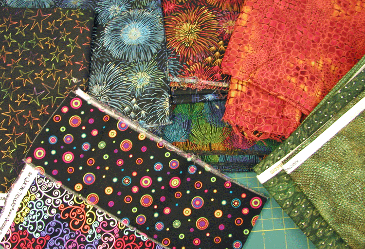 And pulled some hand-dyes from the shelf to go with the sparkly fabrics.